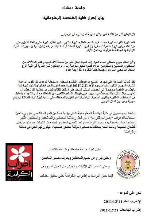 An almost complete of the strike in most of the Universiyt Colleges especially; Medicine Faculity, The Informatics Engeering Faculity, Computers and Automation Faculity and Economic Faculity
